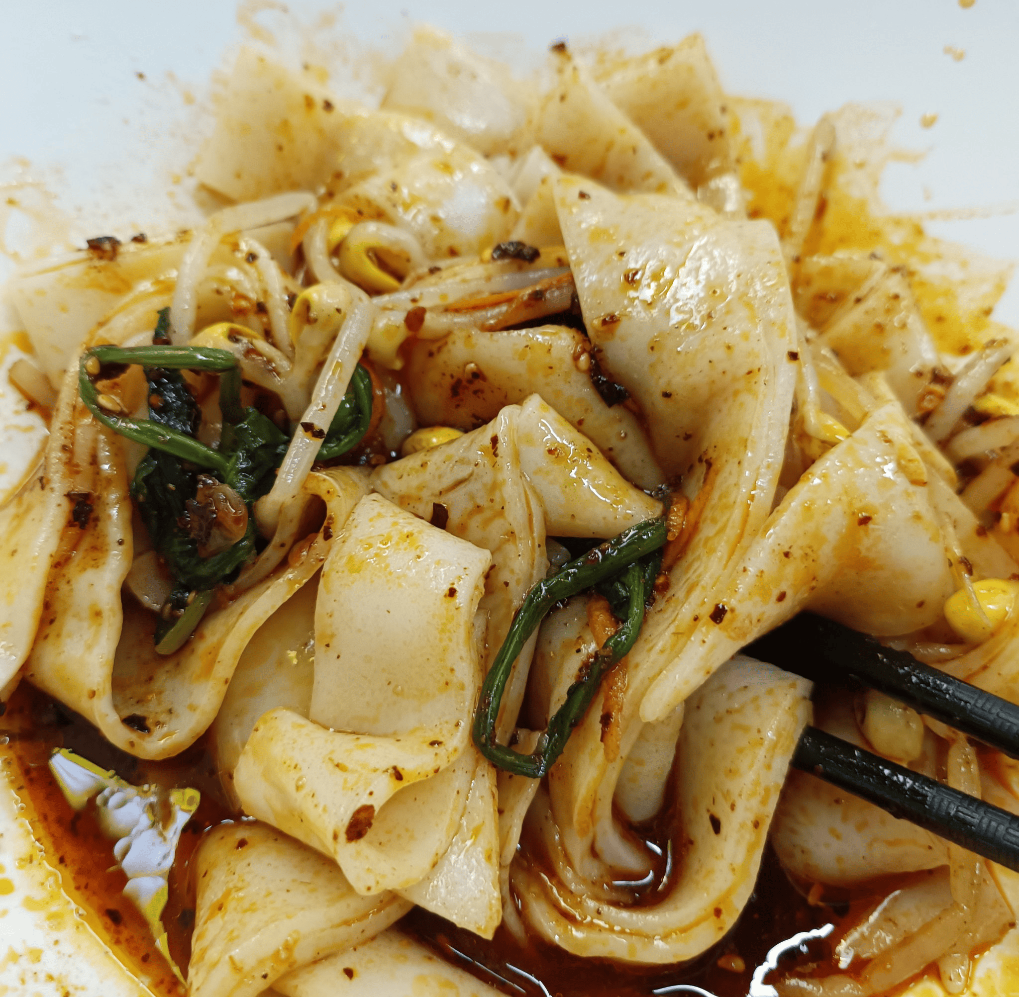 - 食用方式:切成宽条后,加入油泼辣子、芝麻酱、醋水、蒜汁及黄瓜丝、豆芽、面筋等配菜。口感柔软带嚼劲,酸辣开胃。作为“家常小吃”,它既是午餐晚餐的选择,也是夜宵的热门选项。