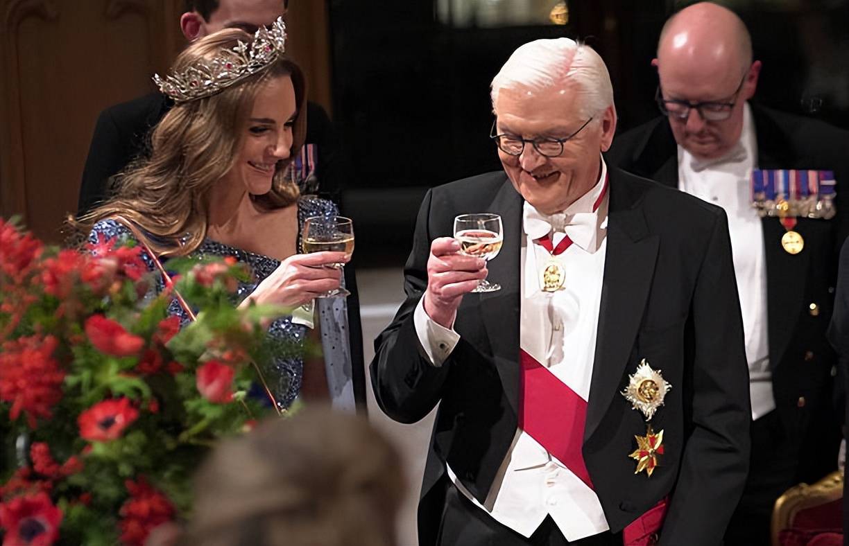 在欢迎德国总统的宴会上,选择一顶由德国亲王设计、且与德国渊源极深的王冠,凯特和她的造型团队这份心思,细腻到让人惊叹。