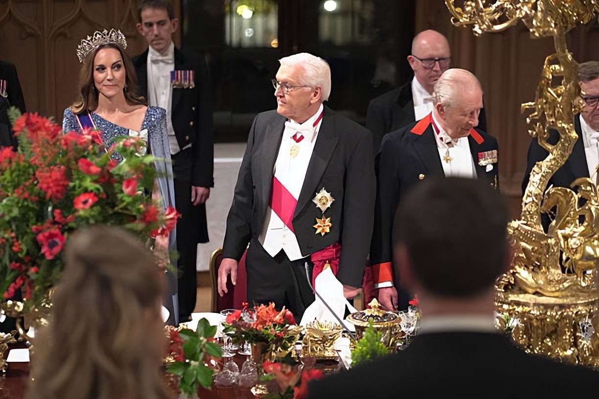 当地时间12月3日,为迎接德国总统弗兰克-瓦尔特·施泰因迈尔及其夫人埃尔克·比登本德的国事访问,英国王室在温莎城堡举行了盛大国宴。凯特王妃的亮相无疑是当晚的最大焦点,其造型选择充满了象征意义与时尚美感。