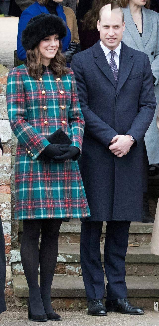 2017 年圣诞日,凯特在桑德灵厄姆庄园参加传统教堂礼拜时,穿的这件大衣堪称节日氛围的绝佳诠释。