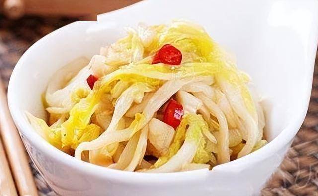 白菜芯经过盐腌出汁、冲洗挤干后,与蒜碎、辣椒碎、醋、生抽、香油等调料拌匀。这道凉拌菜的核心在于“腌制去水”的步骤,使得白菜芯口感脆嫩而不软塌,酸甜咸鲜的酱汁渗透其中,清爽开胃。它完美诠释了“品后体煨”的韵味——简单的食材通过巧妙处理,展现出层次丰富的回味,是夏日餐桌上的清凉佳品。