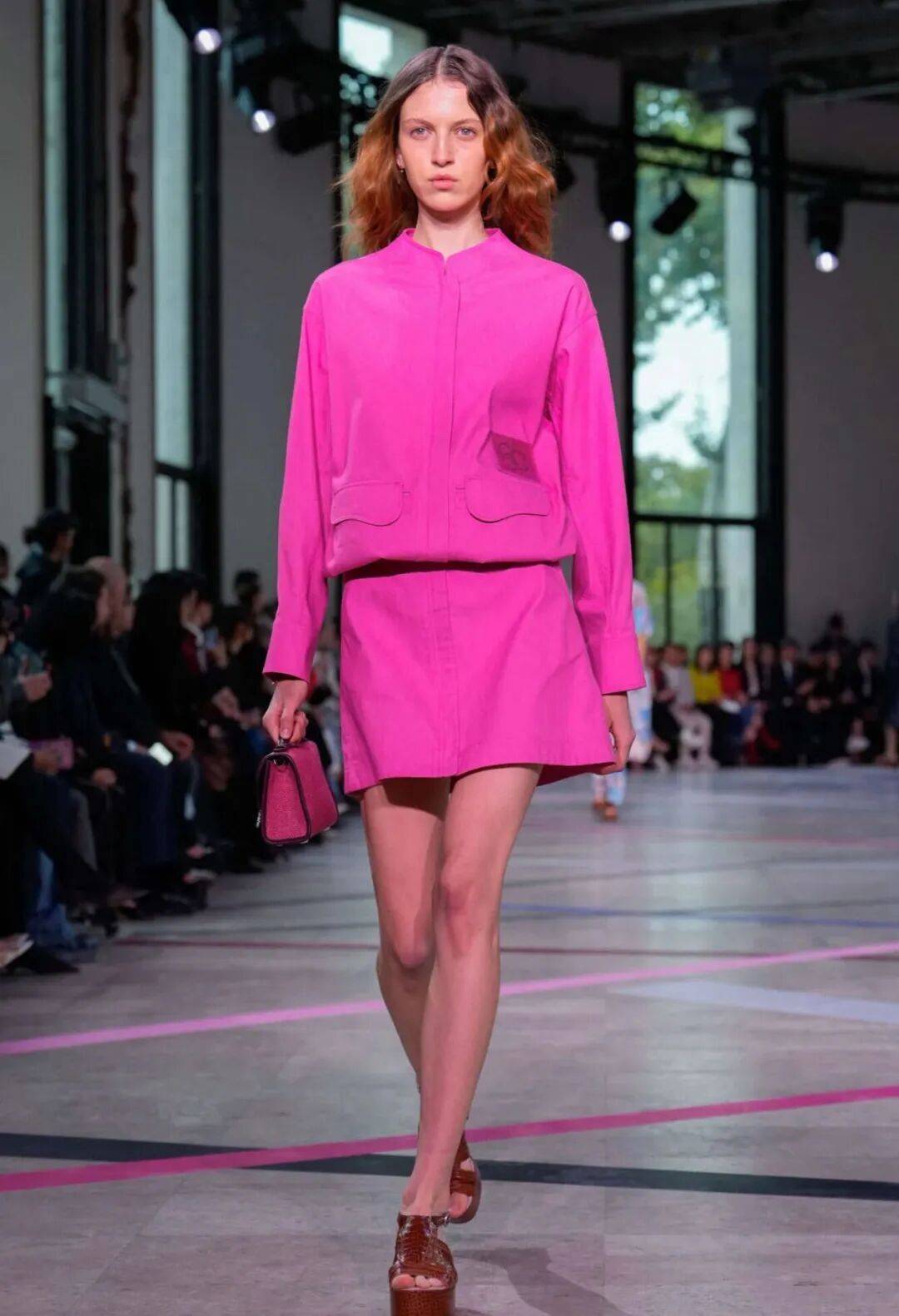 烟草棕、咖啡色,搭配亮玫红、钴蓝的光彩,