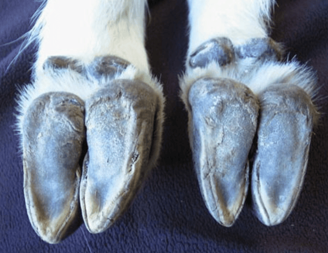 蹄子的底部有类似橡胶垫的材料,这样可以增加摩擦力,很好的将山羊吸附在岩壁上;