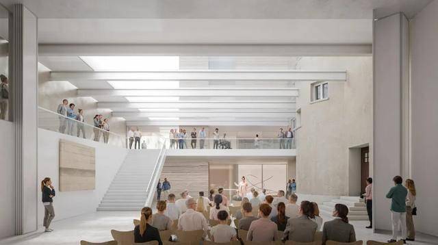 (方案以瑞士建筑的简洁理性著称,可能通过极简的形态语言和对光影的精妙控制,实现新旧建筑的功能与美学平衡。)