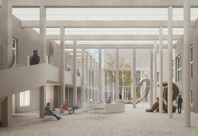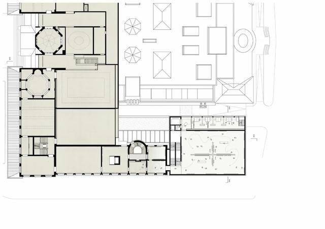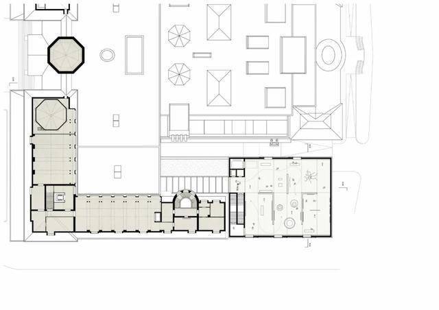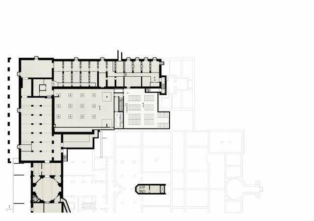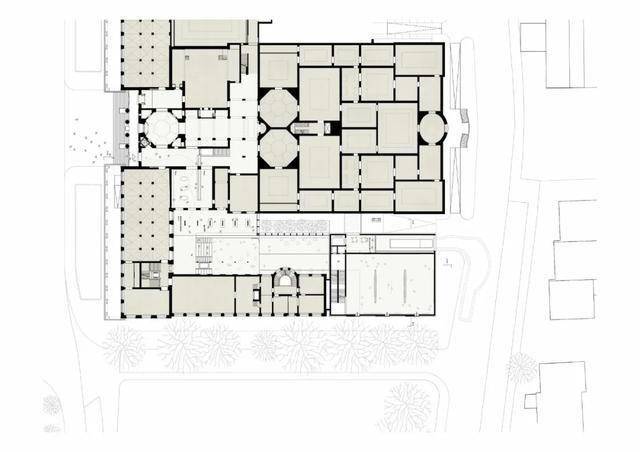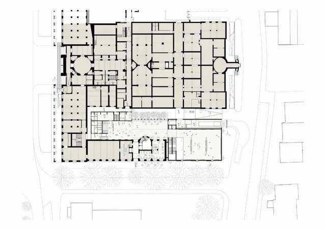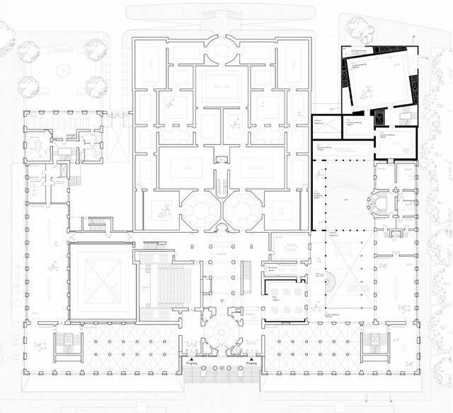 扩建部分将占用约800平方米的用地面积,这片区域目前为展厅以及博物馆南庭院的现有停车场。除了新增1800平方米的展览空间外,还将建造储藏设施和办公空间。此外,咖啡厅也需要搬迁,因为其当前位置将成为未来连接新旧建筑的通道。现有地下室以及博物馆庭院下方的潜在地下结构,都为展览规划的实施提供了更多空间。