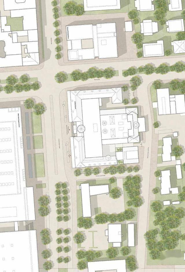 1. 历史与现代的融合:所有获奖方案均强调新建筑与Theodor Fischer古典建筑的对话关系,而非简单叠加。通过形态、材料或空间策略,实现“可识别的现代性”与“尊重历史”的平衡。