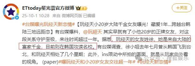 早在今年10月,台媒就报道过阮经天交往了一个比自己小20岁的女孩子徐小姐。