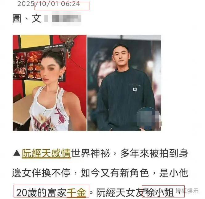 而阮经天这边,感情生活同样备受关注,且呈现出与许玮甯截然不同的状态。他的感情生活多姿多彩,恋爱不断,似乎总能与比自己小很多、漂亮又有钱的女孩子展开恋情,这种状态与许玮甯的稳定幸福形成了鲜明对比。