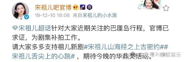 很快,祖儿这边解释说,这次来巴厘岛是为两人主演的剧集补拍,间接否认恋情。