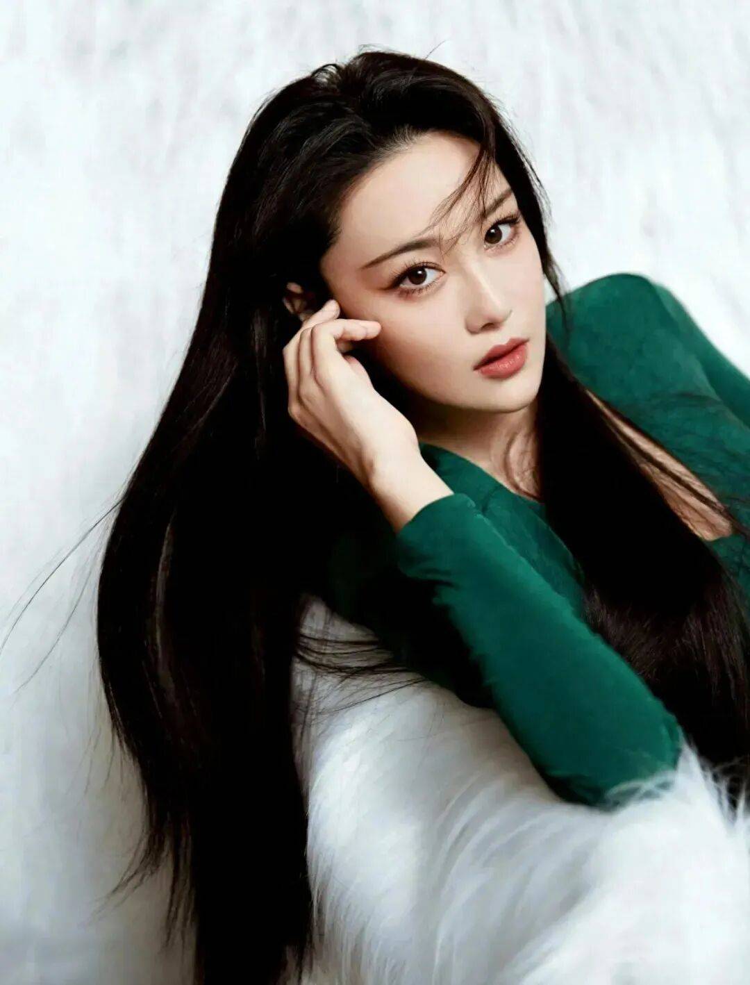 张馨予丨绿色深V长裙, 女神范十足,美丽大方