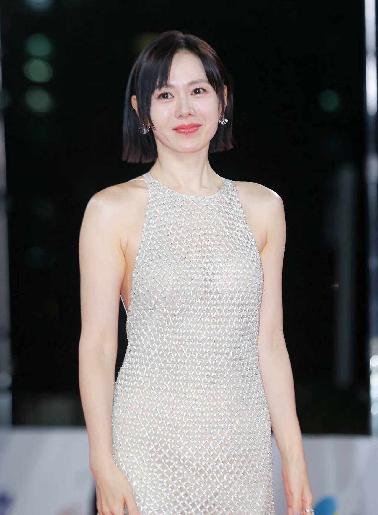 正面看孙艺珍的裙子已经蛮性感的了,没想到亮点竟然是在背后,它还是一条漏背裙,孙艺珍也是侧过身去,大秀美背。如果只看背影,完全看不出她的年纪,身上真的没有赘肉。