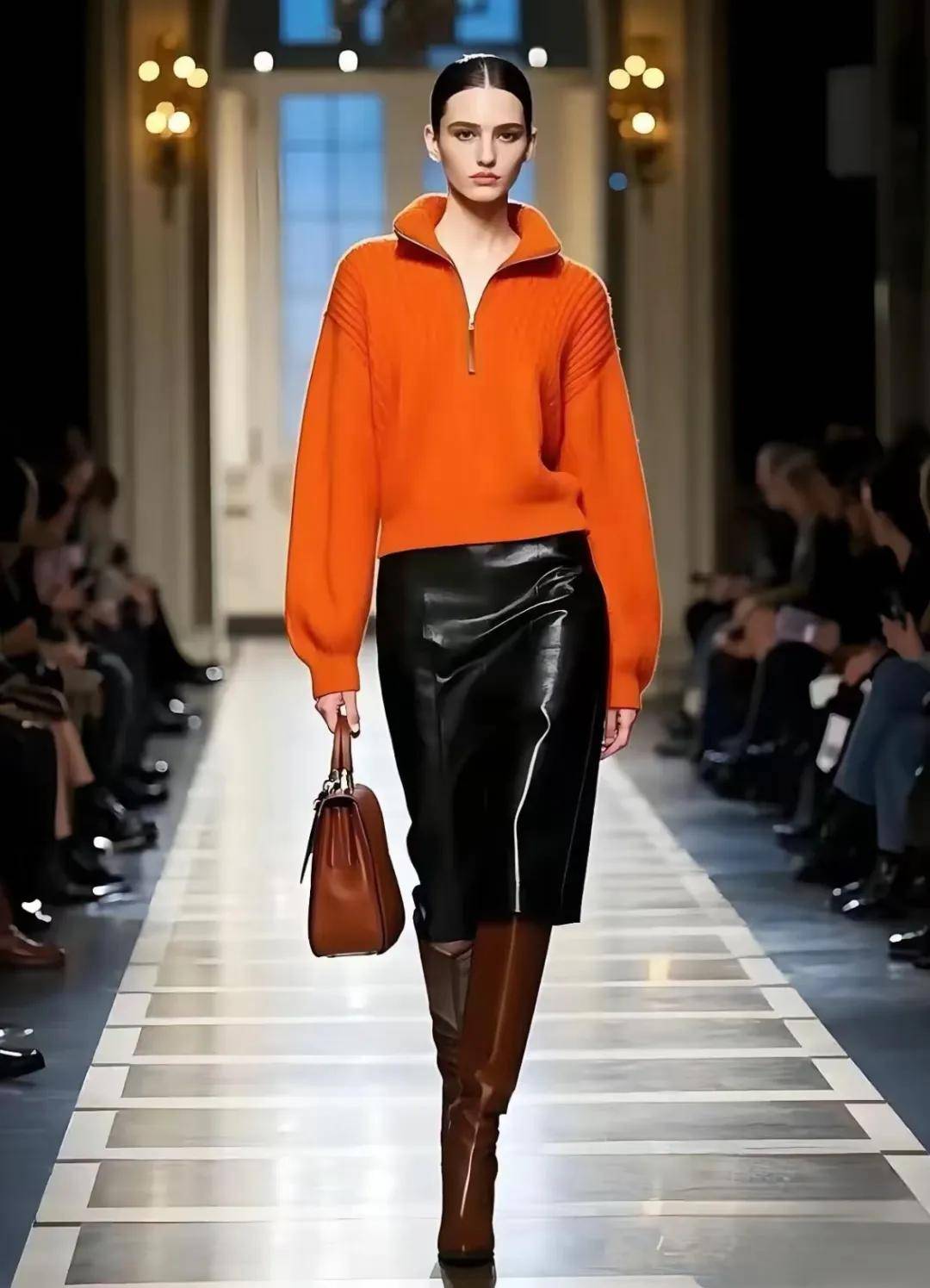 搭配一条棕色半身裙或者阔腿裤,可以增加穿搭的稳重感和复古氛围,让整个造型更具冬天韵味。