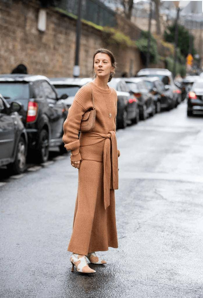 工作日用针织开衫披肩增添专业感,假日以卫衣+骑行裤传递运动活力,同一单品因场景转换传递不同故事。