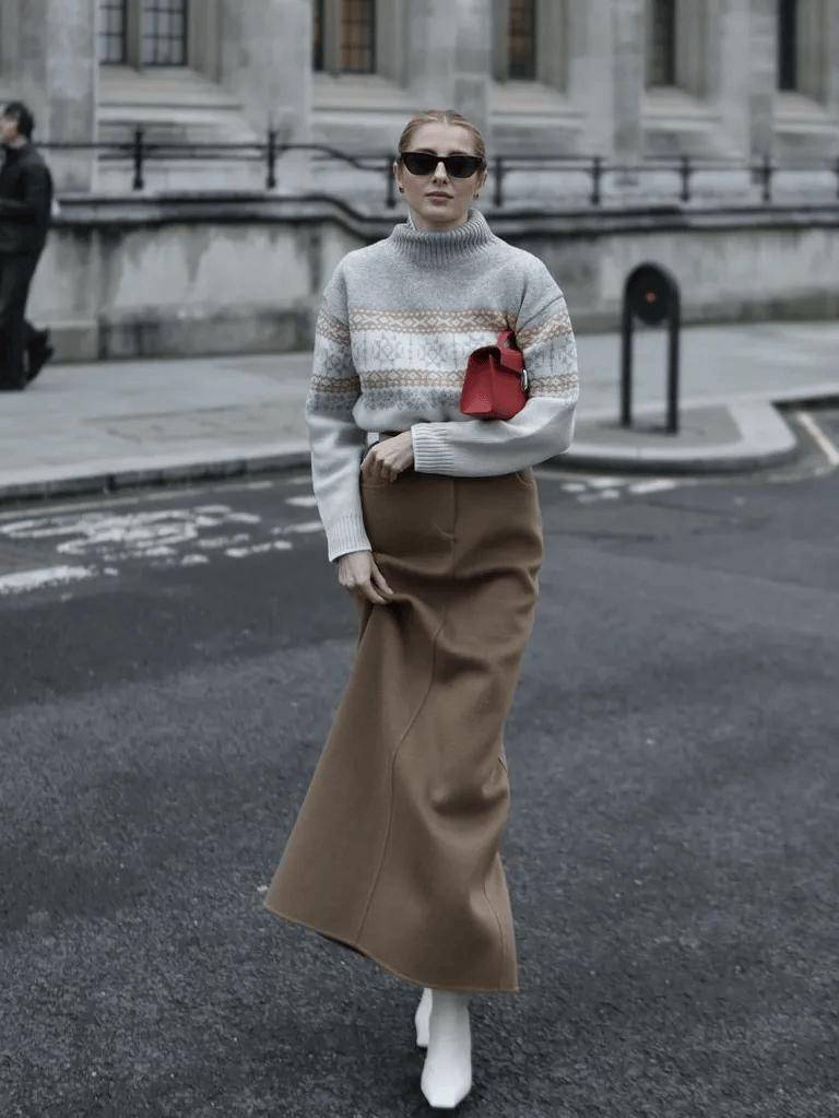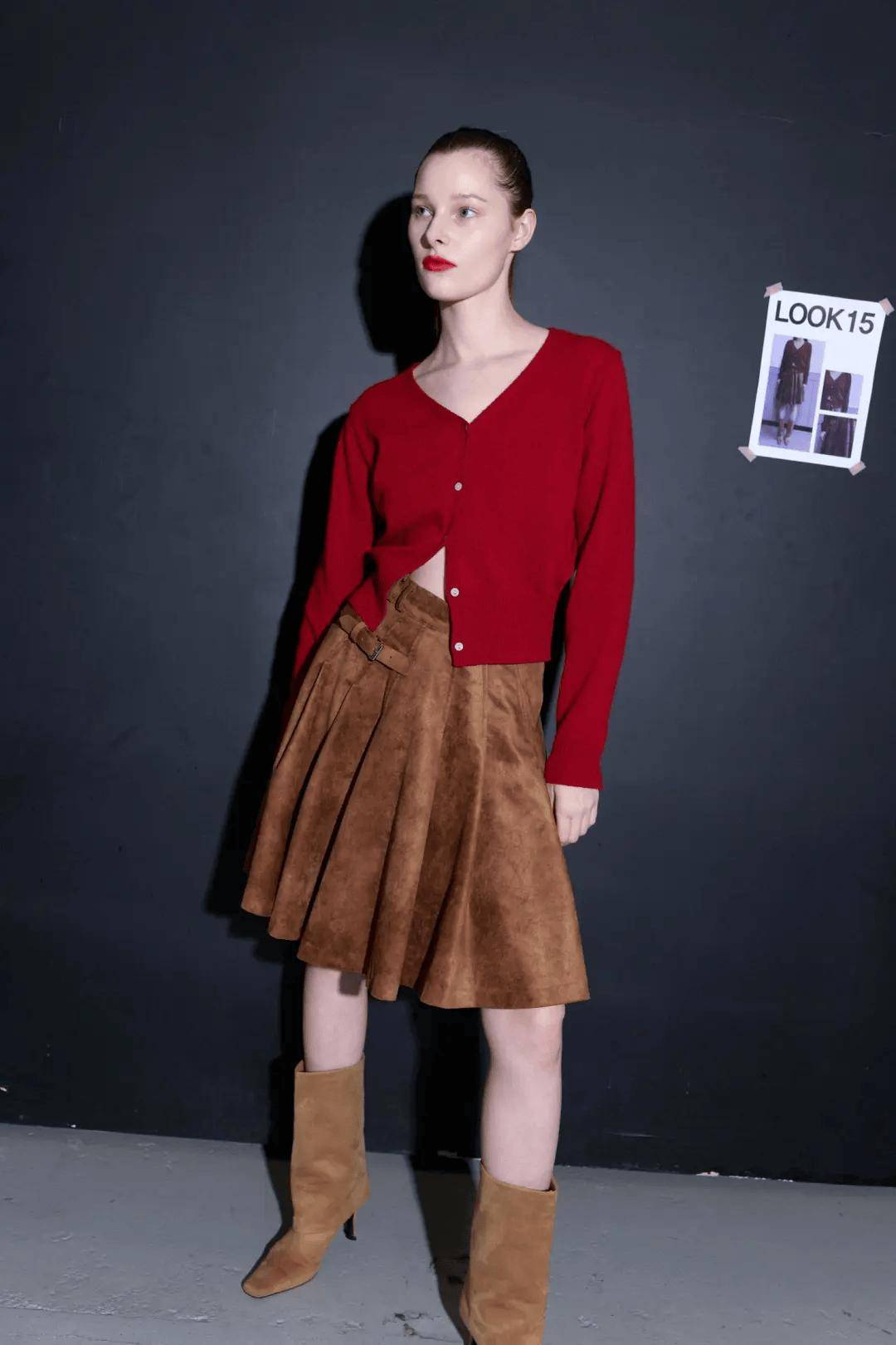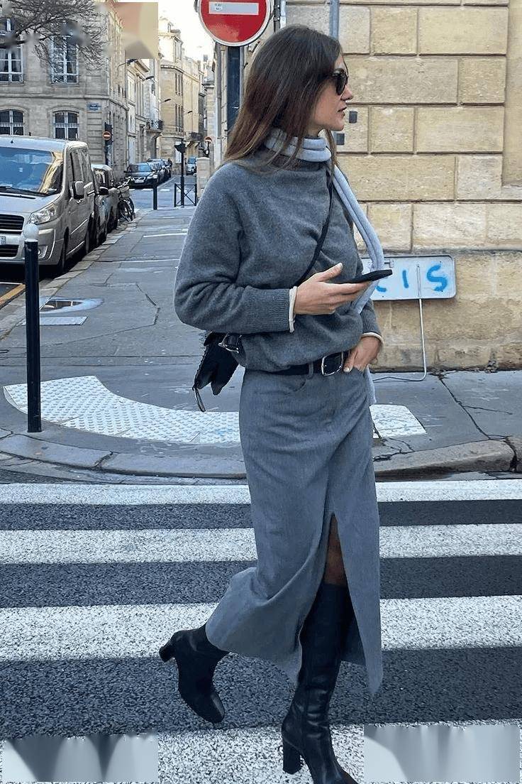 核心公式:70%中性色(黑白灰)+30%点睛色(如烟绿配砖红)。戴安娜的红绿撞色因降低饱和度而高级,避免艳俗。