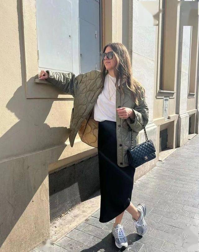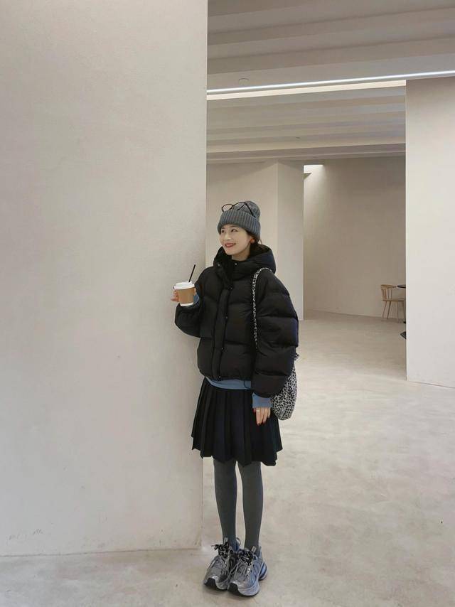 适当露脚踝,也是对老爹鞋的尊重,特别是羽绒服的穿搭,裙子和鞋子预留空间,才会有呼吸感。
