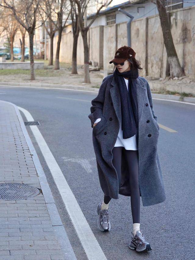 一件冬日必备的灰大衣,裹在身上,温暖又有型,老爹鞋选择同色系,套条无痕裤,不费力的穿出好身材。