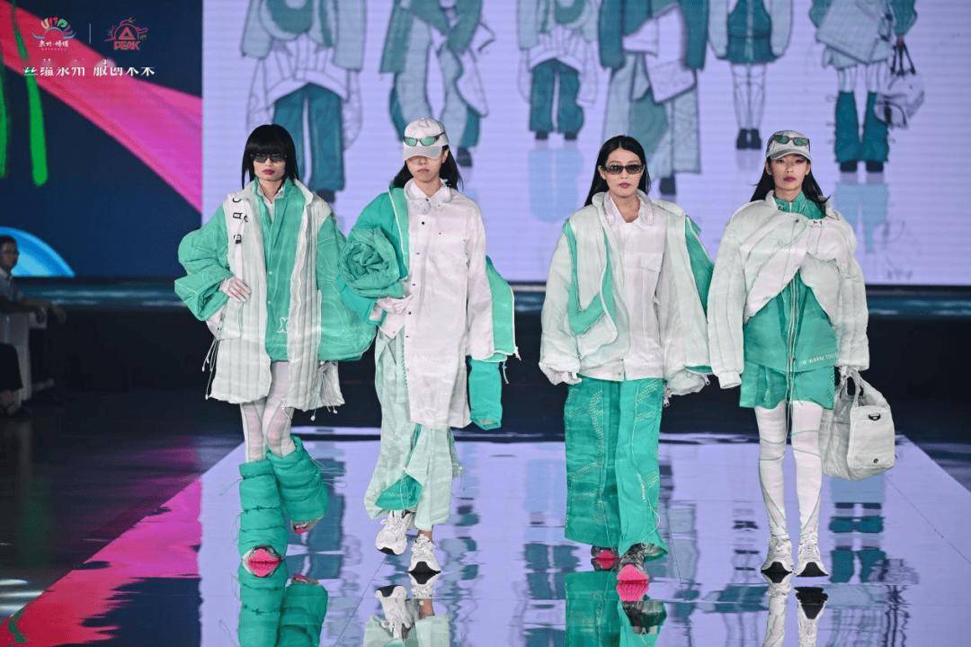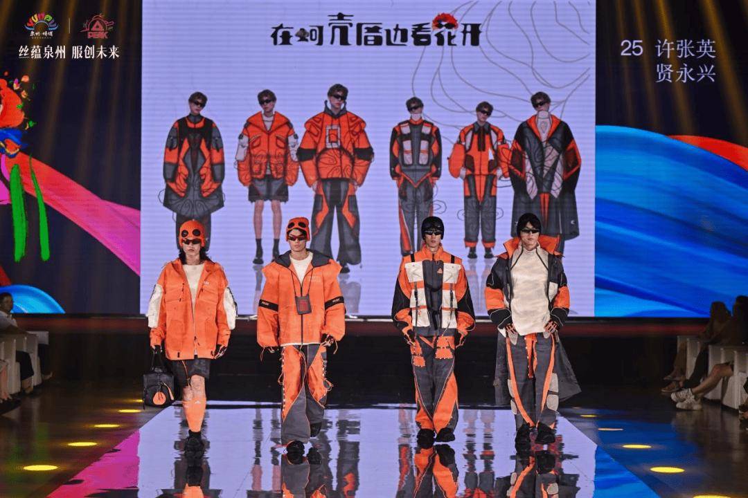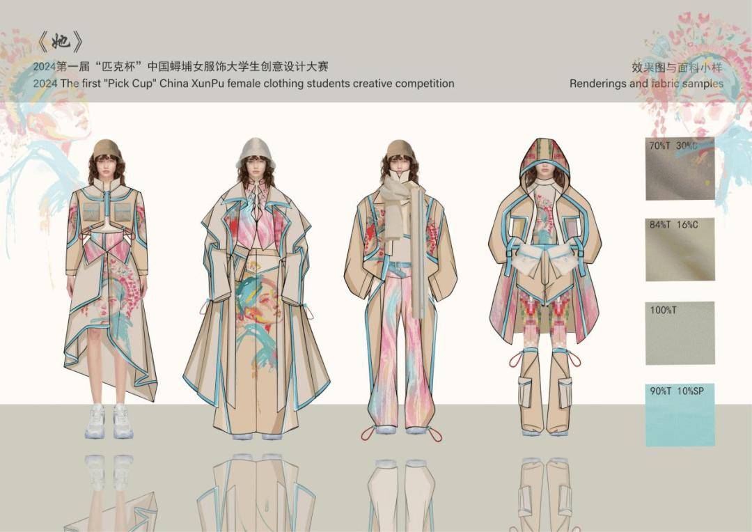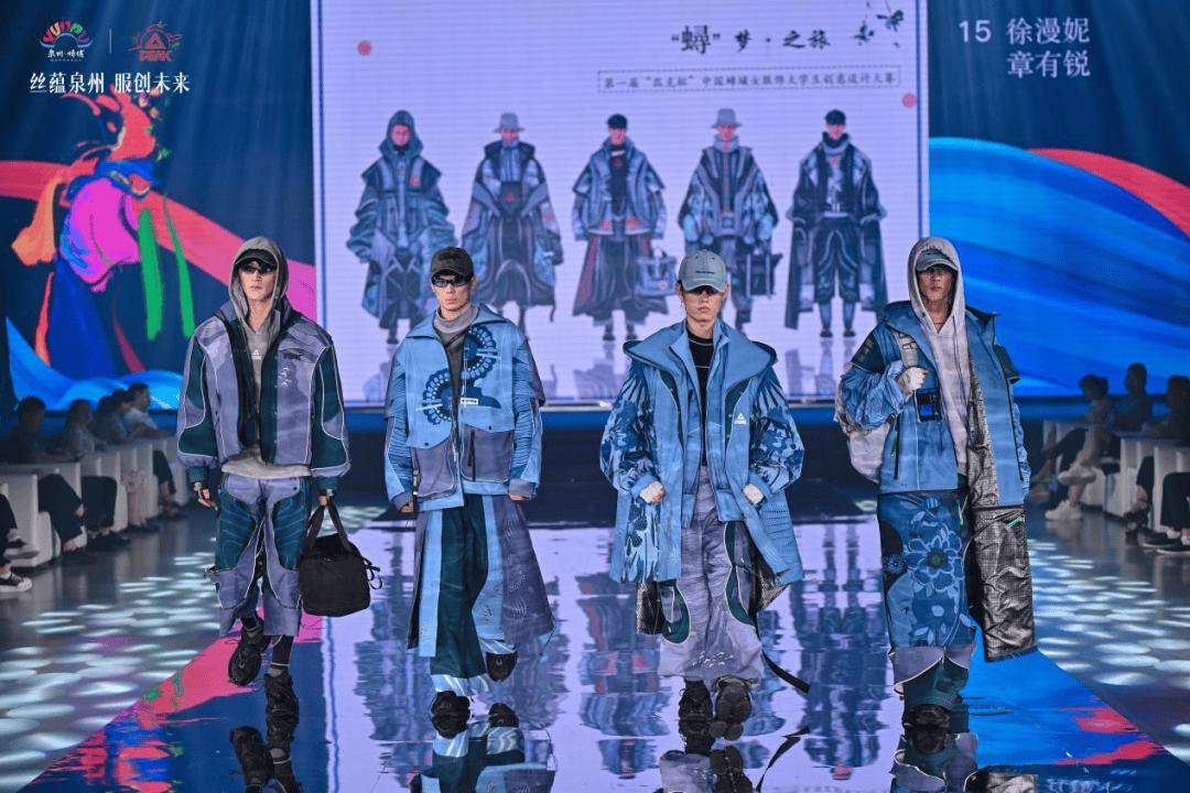 作品介绍:该系列是泉州蟳埔文化启迪下,我们围绕“破茧”主题创作,融合古瓦、轻雾、南音戏元素,设计出具有运动风尚与蟳埔特色结合的服装。色彩上,提取海雾灯塔之光,融入2025春夏流行色,展现Z世代色彩。工艺上,运用充气、防水、功能抽绳等技术,体现商业落地性。细节处,莫比乌斯环象征文化传承与可持续时尚。蟳埔文化,泉州文化明珠,东方非遗烙印,跨越地域限制。匹克“绝不让”精神,与蟳埔自强不息相契合,我们期待在时代循环中,为文化事业发出时代之声。