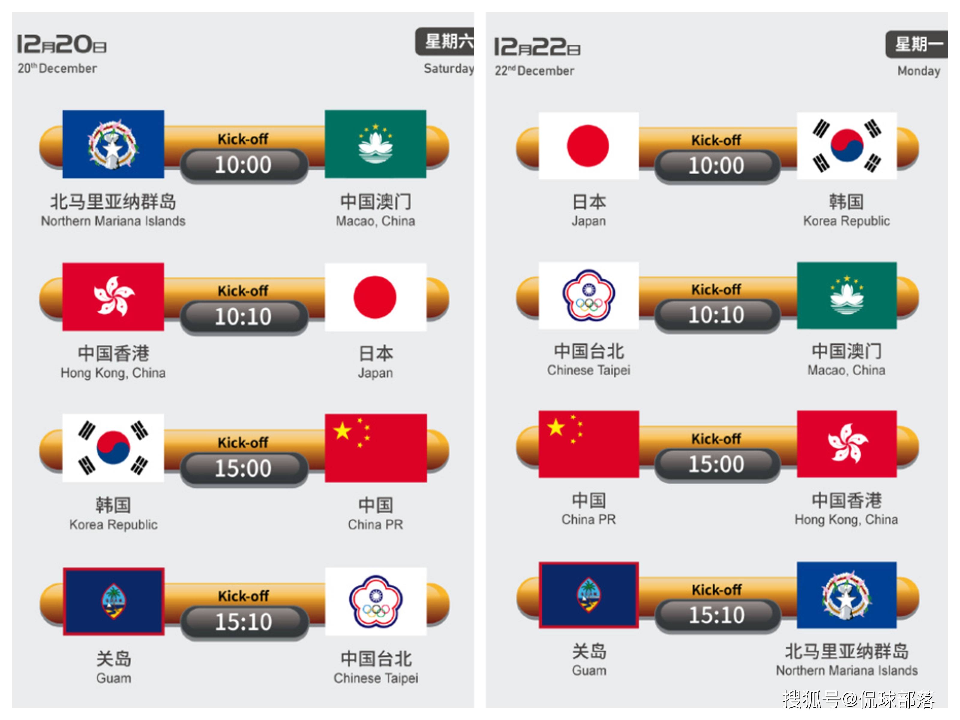 第三轮:日本男足VS韩国男足(12月22日上午10点)