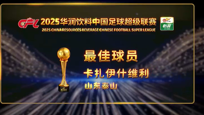 2025赛季中国足球职业联赛颁奖会:泰山双星闪耀,瓦科与彭啸斩获重磅荣誉