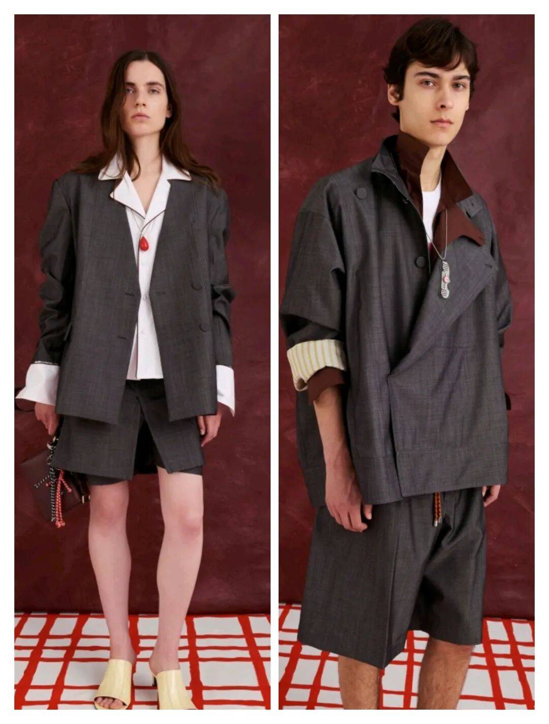 在这些红色的高级优雅中,纯色的简约结合了面料纹理的材质质感,以撞色花纹、休闲廓形等设计也多了一些日常的随性大方。