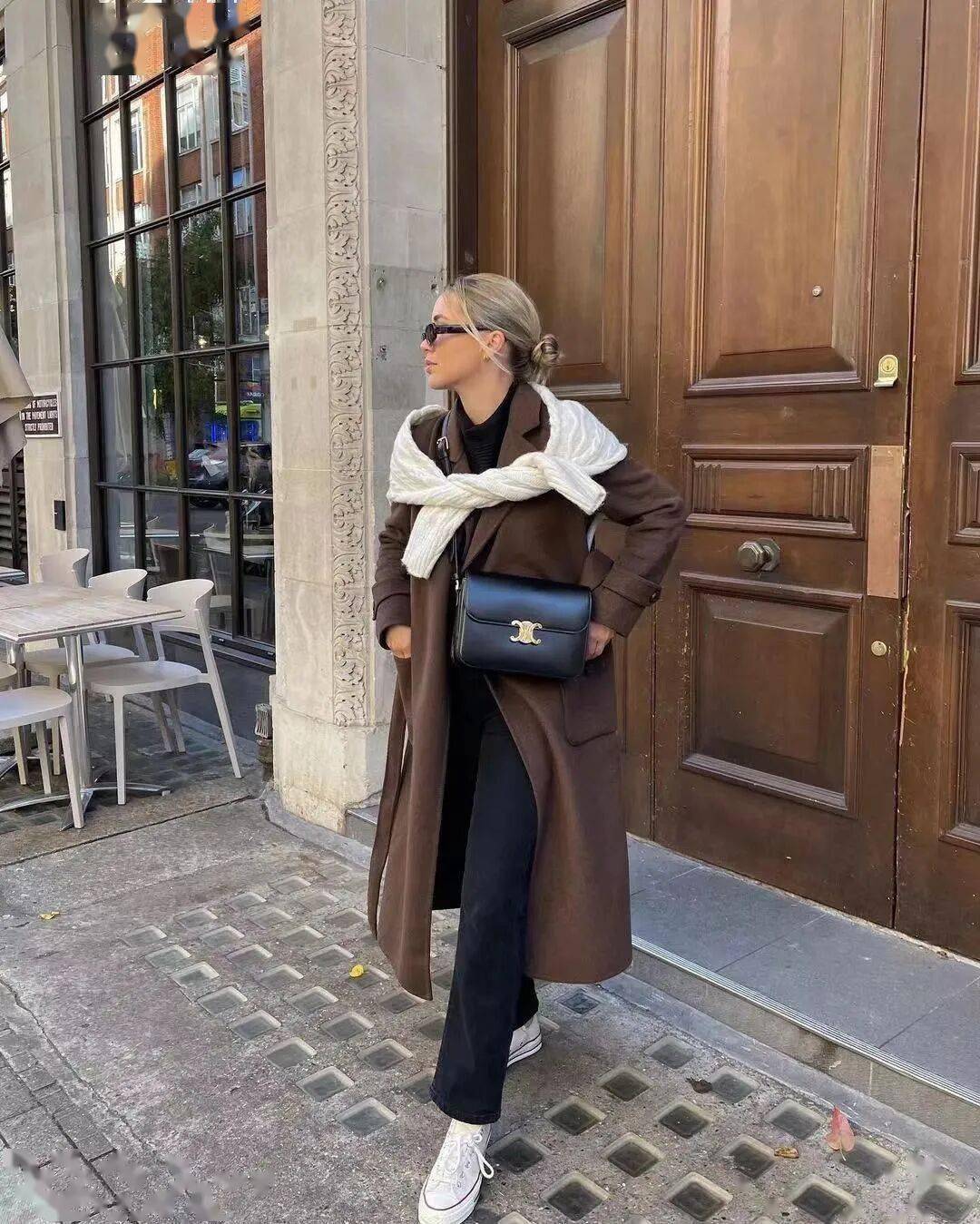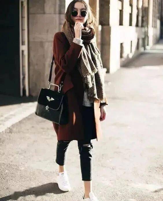 色彩组合:以深棕色为主调,搭配卡其色直筒裤或焦糖色A字裙,局部点缀复古红围巾或蓝色牛仔衬衫,营造沧桑而高级的视觉效果。
