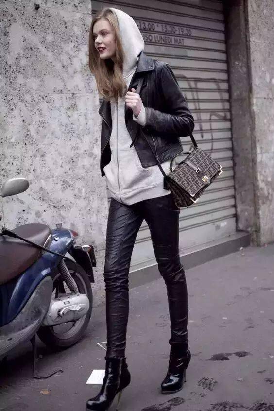 游牧风:翻毛皮领外套+复古骑士靴,呼应旷野自由感。