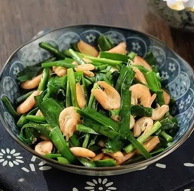 制作: 烧热锅放入适量的油,将姜末入锅爆香, 加入河虾进去翻炒至河虾变为淡红色;加入韭菜段后大火快速翻炒, 炒至韭菜微微变色后加入少许盐调味, 翻炒均匀即可。