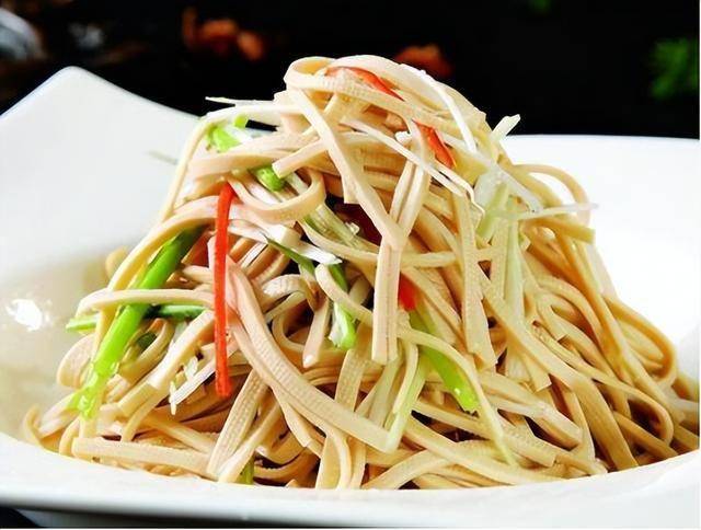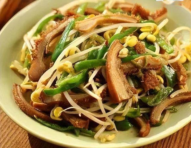 原料: 卤煮熟的牛肚丝 黄豆芽 青椒 生抽 油盐