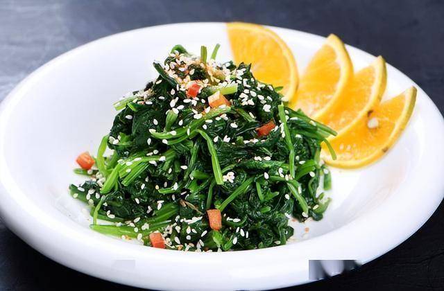 3、烫好的菠菜捞出冲凉、挤干水分,加入调味汁、熟白芝麻拌匀即可。