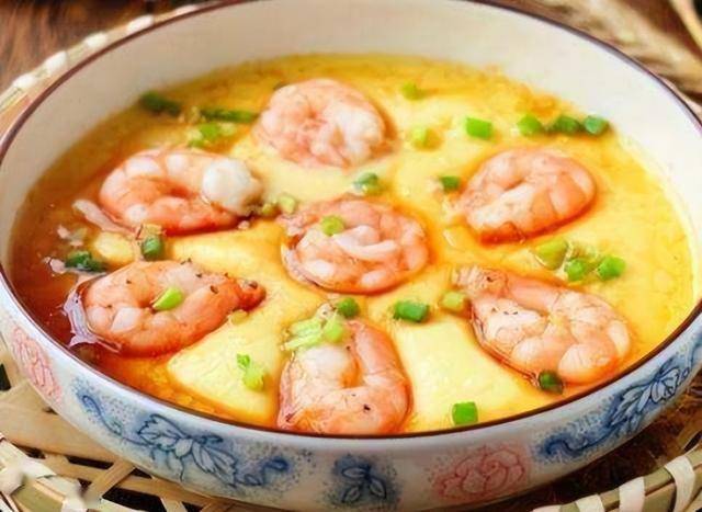 3、蛋液倒入模具中,放入蒸锅,中火蒸熟成型,放入虾仁;