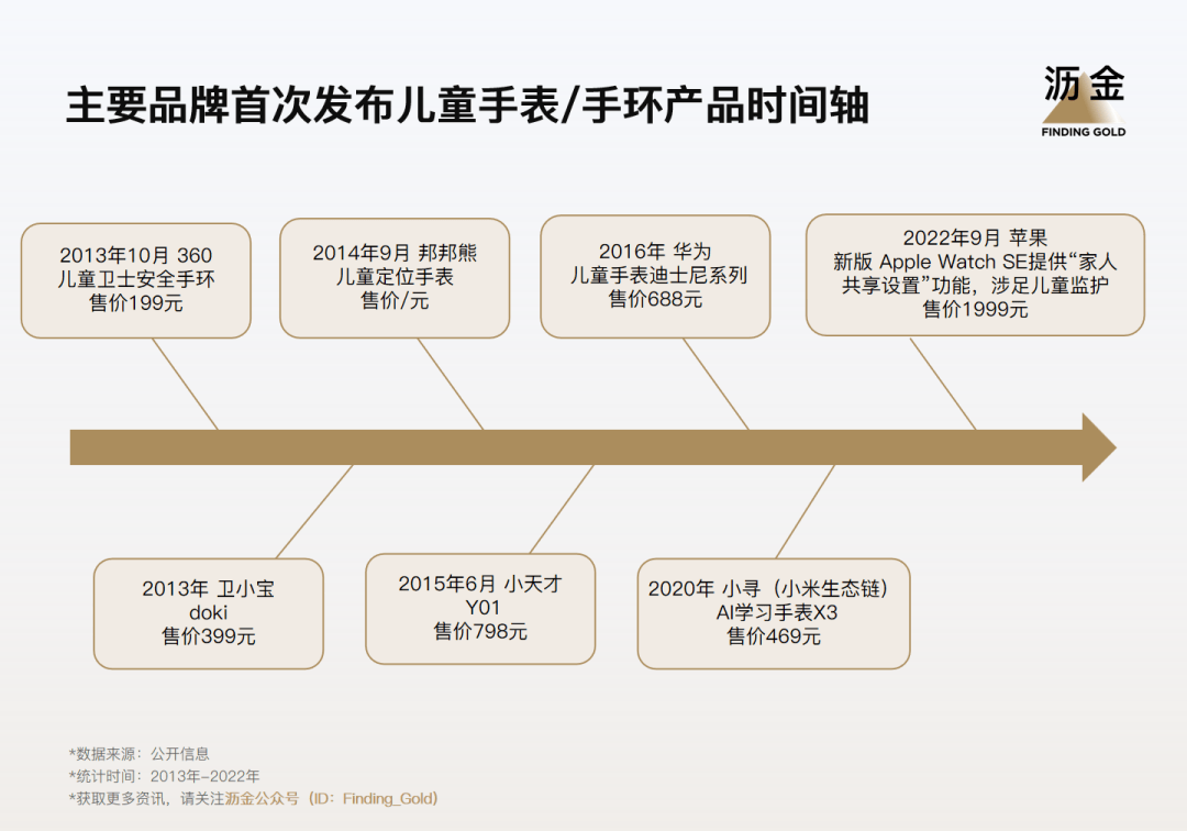 2013年前后,360、搜狗等互联网公司就率先推出定位手环或手表产品,核心卖点主打安全防丢,之后的几年,华为、小米等巨头也嗅到商机、纷纷入局。