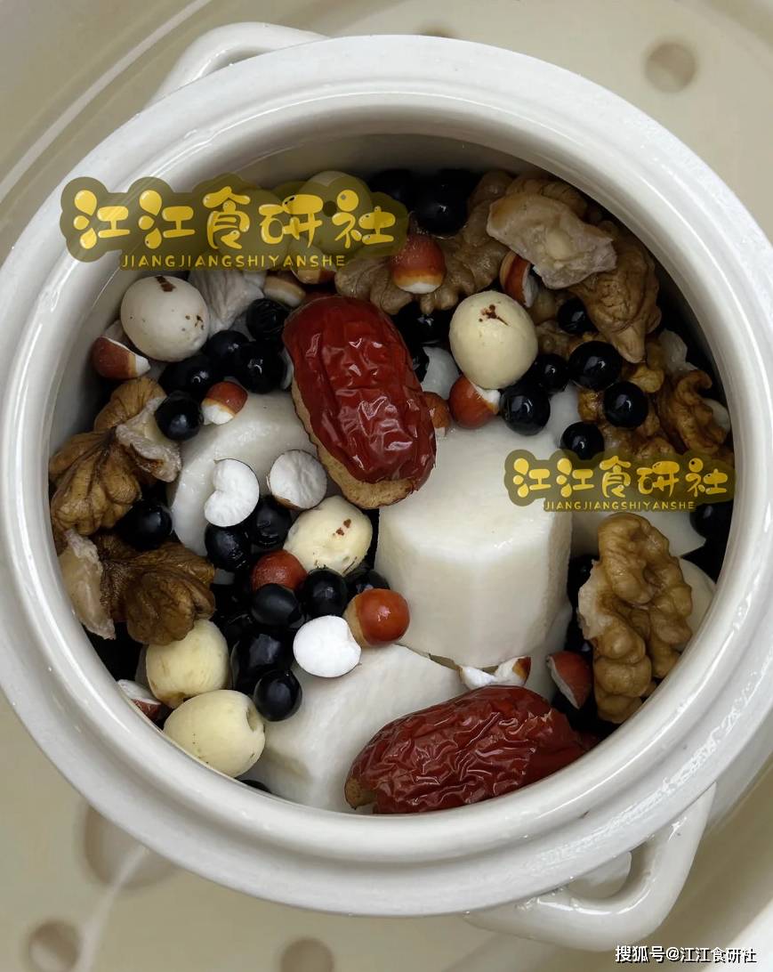 第二道:山药莲子核桃黑豆红枣肉汤 —— 有“根”有“果”的底气