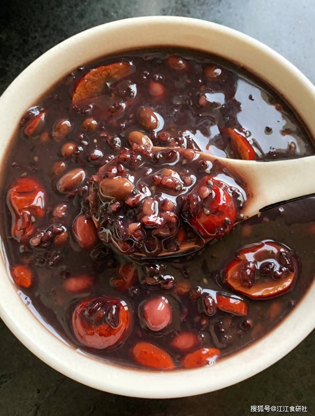 它是一碗复合的、温和的能量羹。颜色深紫,香气醇厚,口感软糯。喝下去,胃里暖暖的,很踏实。