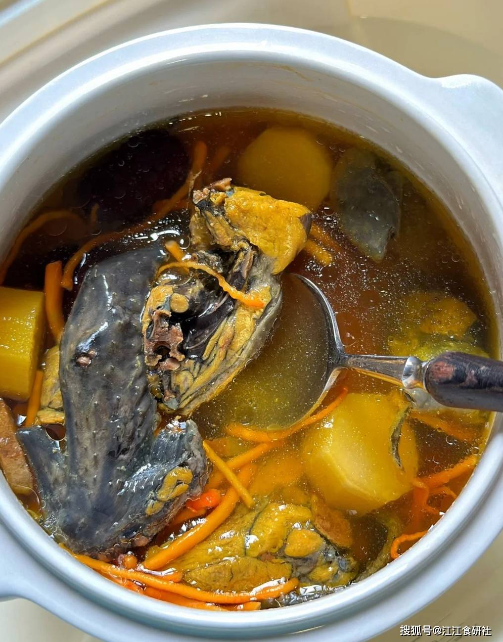 乌鸡,是这道汤的主角。它比普通鸡肉的氨基酸和铁含量更高,滋阴养血的效果更好。皮黑、肉黑、骨黑,在中医看来,也更入肾。