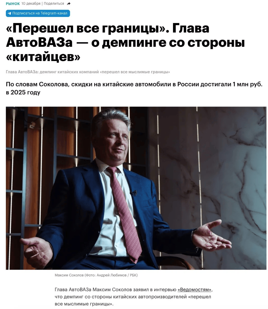 倾销指控:指责中国车企单车折扣过高(如100万卢布),构成倾销行为。