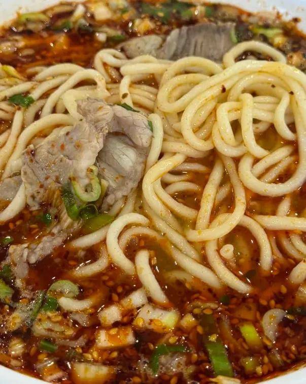 图片3中的红亮汤汁、肉片、葱花、辣椒碎的面条,极有可能就是一碗地道的饸饹面。