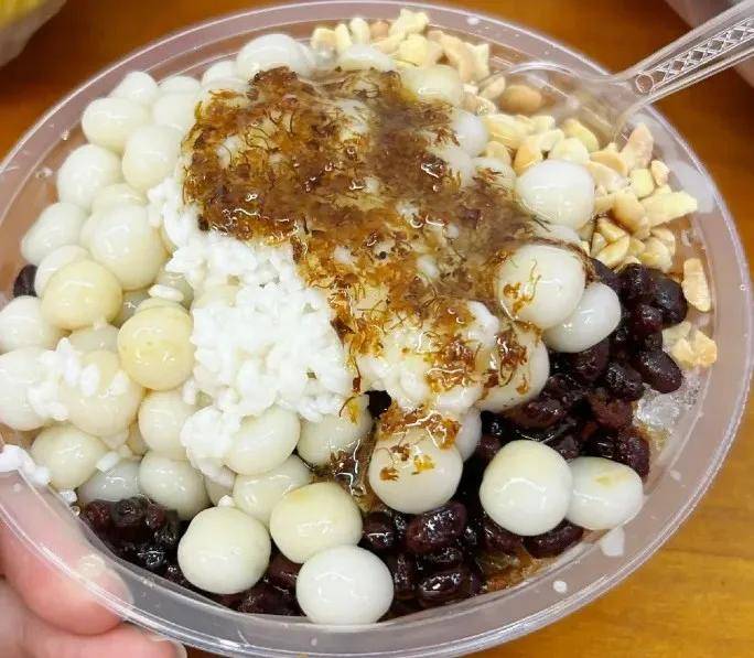 | 图7 | 透明胶状物、芝麻、葡萄干 | 凉粉 / 冰粉 类似物? | 可能为冰粉升级版 |