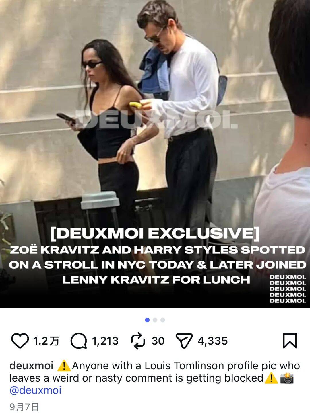 说的就是小猫女Zoë Kravitz和哈卷Harry Styles,