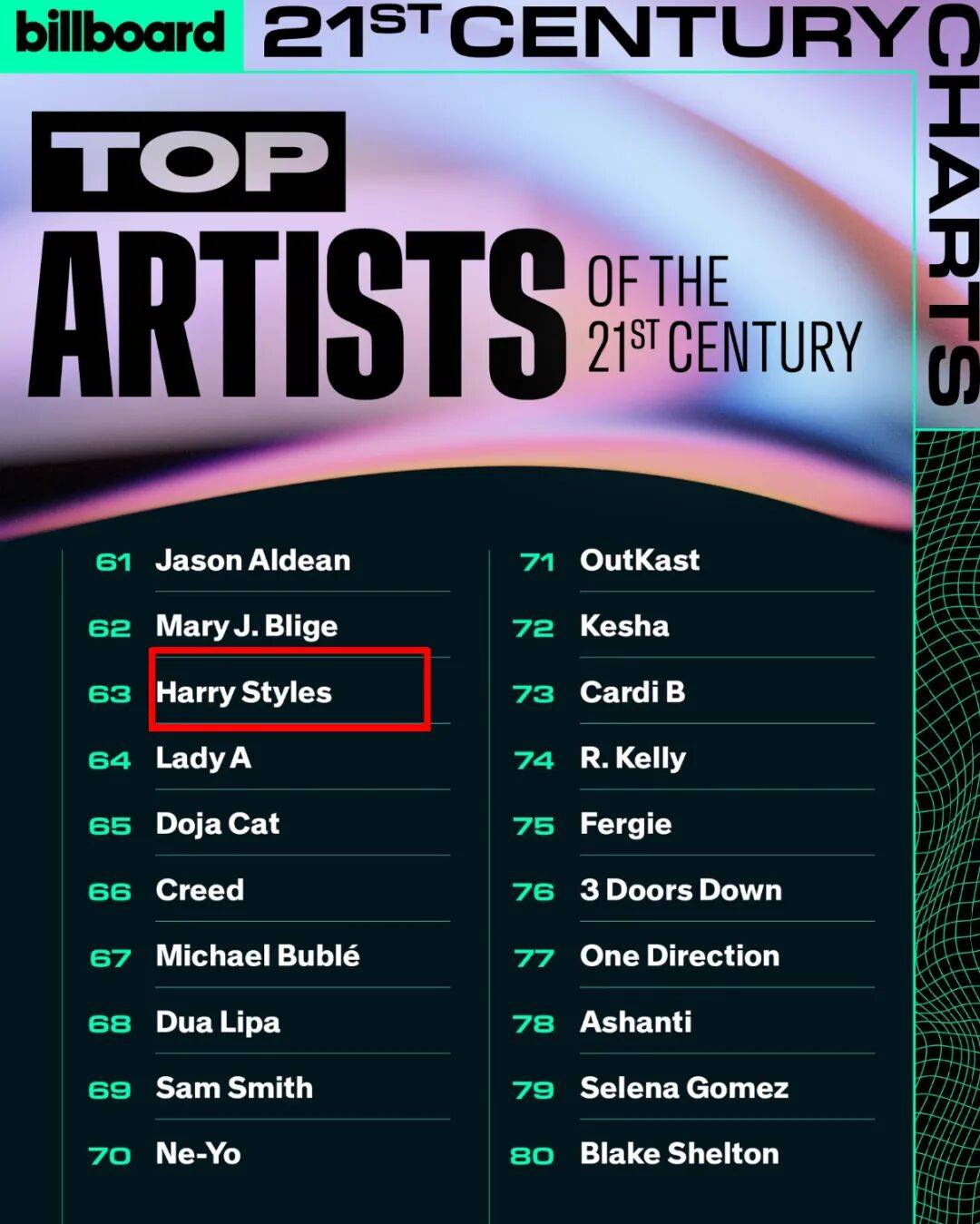 入选了Billboard21世纪顶级艺人排行榜👇