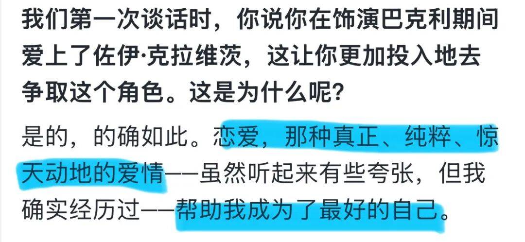 采访时说跟zoe的恋爱“真正、纯粹、惊天动地”👇
