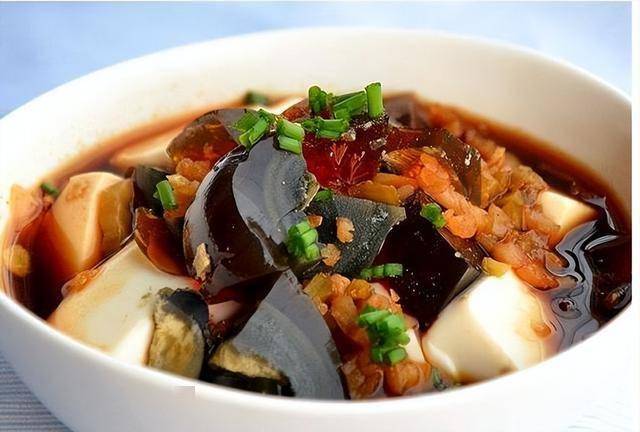 食材内酯豆腐1盒、皮蛋2只、榨菜适量、酱油适量、醋1小勺、麻油适量。