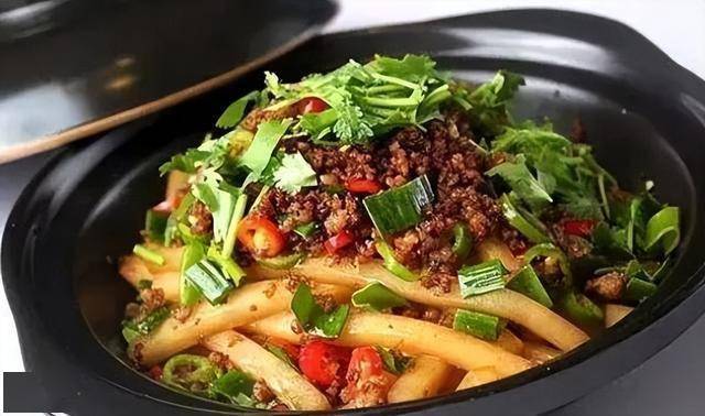 2、热锅中放油(比平时炒菜多一倍),下入土豆条煸炒(这个过程要中小火,并耐心把土豆条的水分炒出)