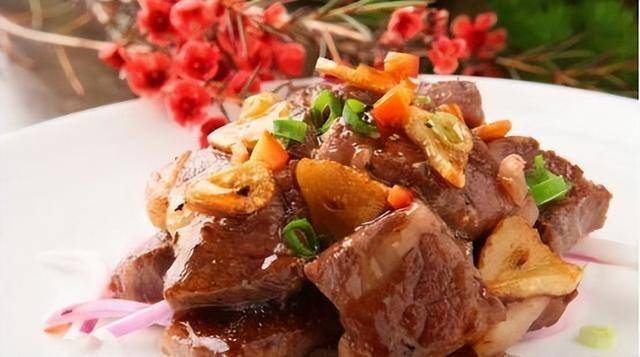 食材:雪花牛肉粒250克。洋葱丝10克,蒜片5克。嘉豪捞拌汁10克,劲霸牛肉汁10克,黑椒碎3克。