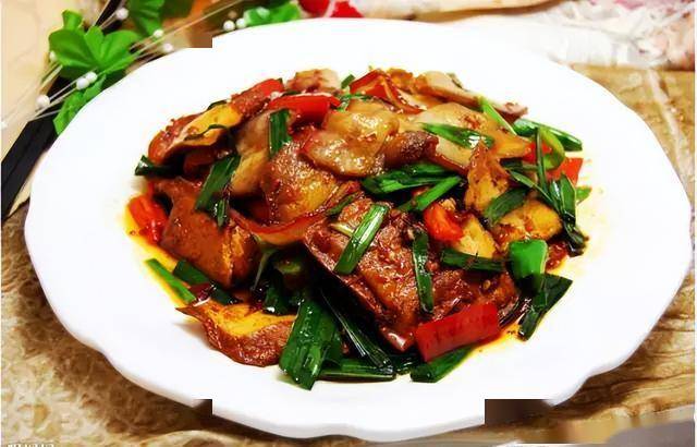 主料:猪肋条肉(五花肉)400克辅料:青椒红椒黄椒100克 豆干适量调料:豆瓣酱25克,甜面酱10克,酱油10克,料酒5克,盐3克,味精2克,植物油20克,大蒜适量做法:1. 将肥瘦相连的带皮猪肉刮洗干净,放入汤锅内,煮10分钟,至八成熟时捞出晾凉,切成5 厘米长、4 厘米宽、0.2 厘米厚的片;2. 将彩椒择洗干净,斜刀切成形;3. 郫县豆瓣酱剁成蓉。4. 炒锅置中火上,放油烧热,放入姜片蒜片香干爆炒,然后下肉片略炒(炒到那个灯盏窝的状态最好了);5. 倒出多余的油,再加入青椒、郫县豆瓣酱、甜面酱、料酒、精盐、味精、酱油翻炒断生即可。回锅肉的制作要诀:1. 精选肥瘦相连带的猪腿肉,煮肉时以断生、肉熟皮软为度,不宜过烂。2. 炒肉片时要旺火热锅,加少许精盐才能使肉片炒至吐油、四周微卷,呈灯盏窝状。