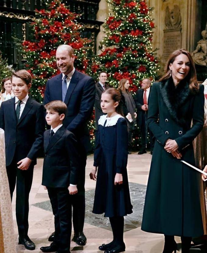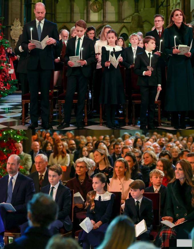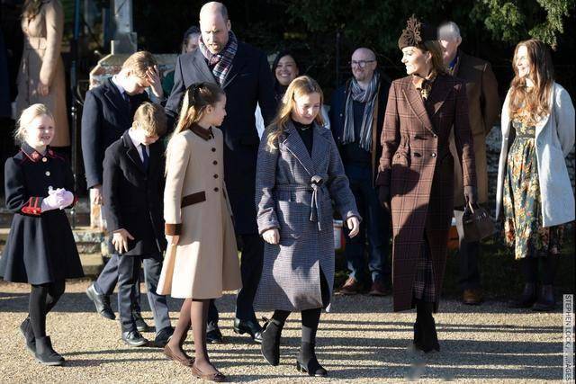 显然王室全员都收到了 “穿搭通知”,因为所有人的着装都协调了大地色系的棕色、节日氛围的红色以及紫红色调。