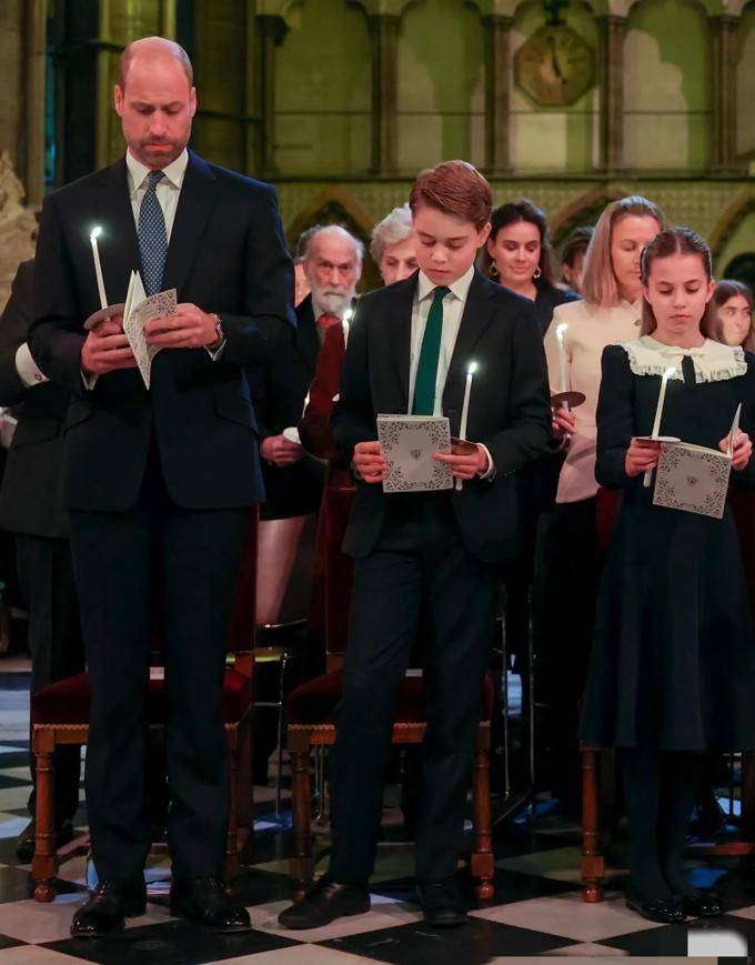 乔治和路易这对兄弟,与他们的父亲威廉一样,都身着深色的西装和绿色的领带,而小路易仍然保持着他的可爱形象。