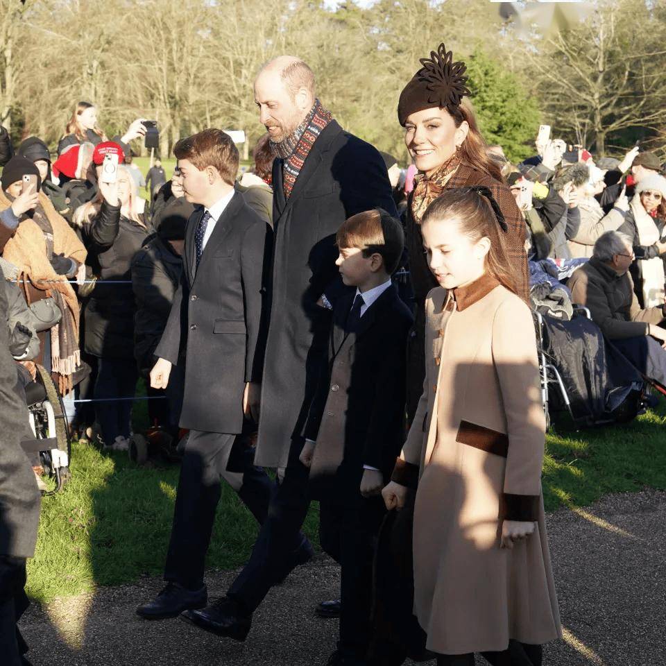 凯特与威廉、乔治、夏洛特及路易一同参加了传统的晨间教堂往返步行活动。
