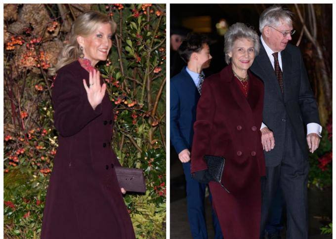 2022年圣诞颂歌会    Eponine酒红色外套+红鞋    同色系连衣裙    节日氛围与王室传统呼应