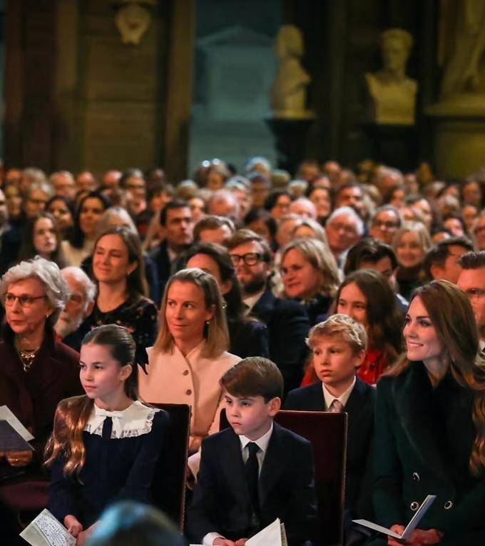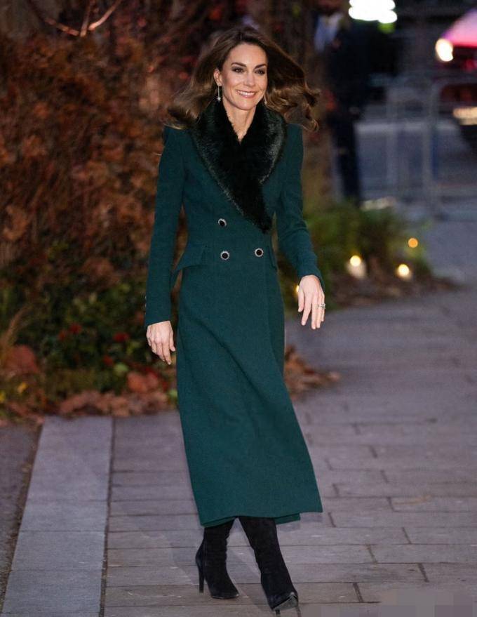 凯特主持的圣诞颂歌会已成为王室年度盛事,她通过邀请家族成员(如安妮公主女儿扎拉一家)和娘家人(母亲卡罗尔)参与,构建了跨代际的温暖场景。例如,2025年活动中,凯特母亲卡罗尔的绿色格纹大衣与女儿的棕色系造型形成“母女装”效果,既显默契又避免过度刻意。