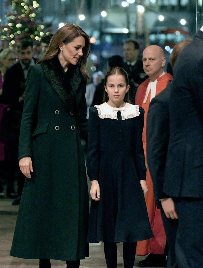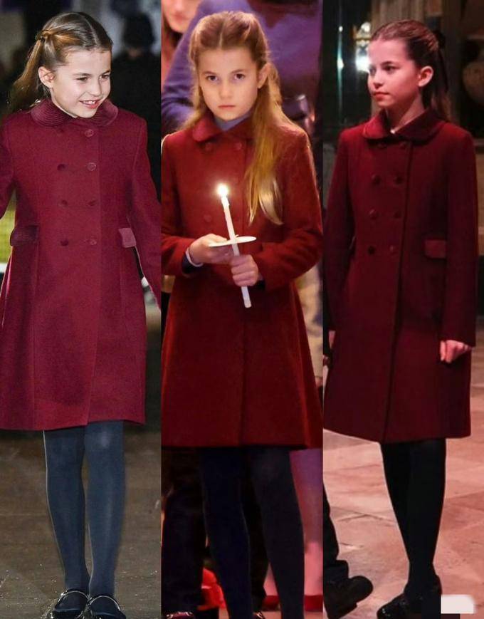 夏洛特公主的这套衣服看起来有些单薄,但现在它已经不再是之前几年的那件酒红色大衣了。